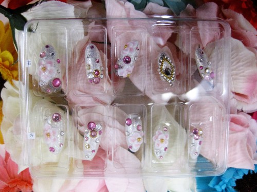 私はピンクベースにストーンをたくさん盛って