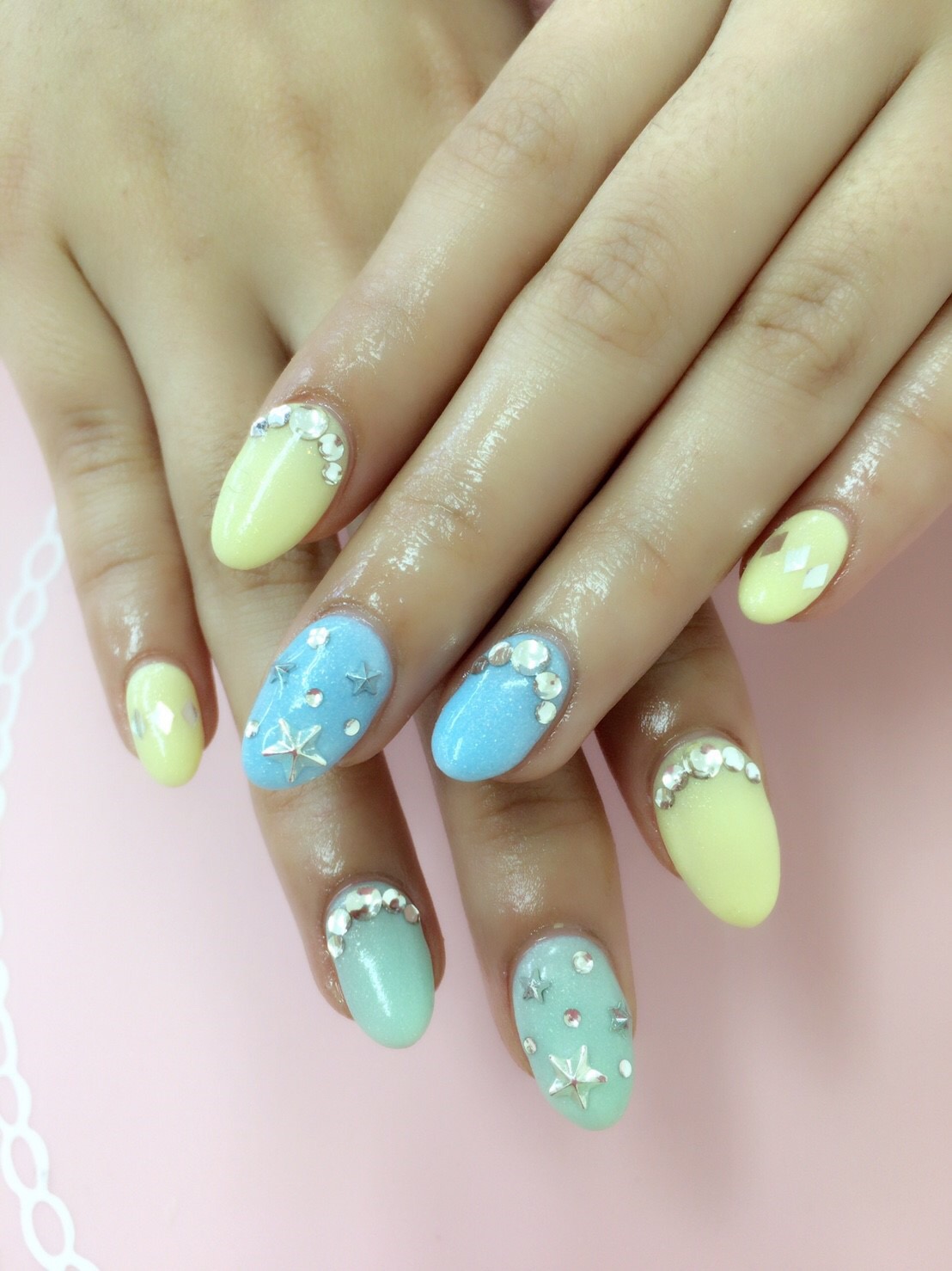 春らしいパステルですが、あえてピンク系を外し寒色系で